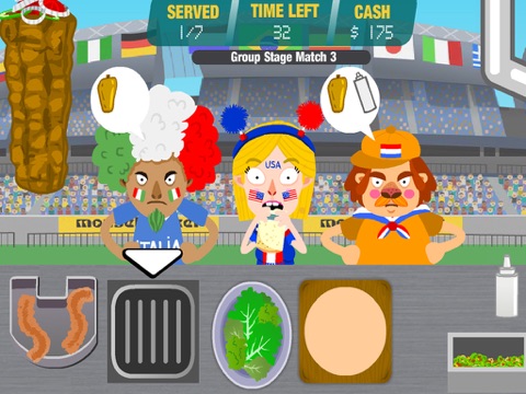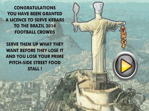 Congratulations ! You have been granted a licence to serve kebabs to the Brazil 2014 football crowds. Serve them up what they want before they lose it and you lose you prime pitch-side street food stall.
