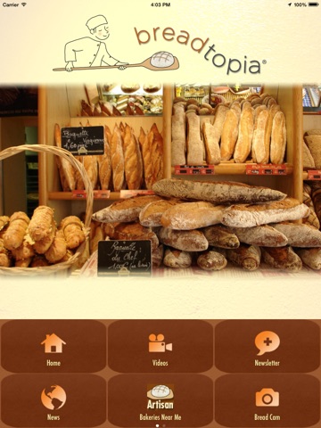 The Breadtopia application provides you with a complete all in one interactive gateway to Breadtopia. Mobile coupons, specials, recipes and videos are now accessible through the Breadtopia app. Use the "Artisan Bakeries By State" and "Artisan Bakeries Near Me" finder to easily locate world class bread bakeries. Stay abreast of upcoming events, participate in photo and social sharing and more from the convenience of your mobile phone or tablet.