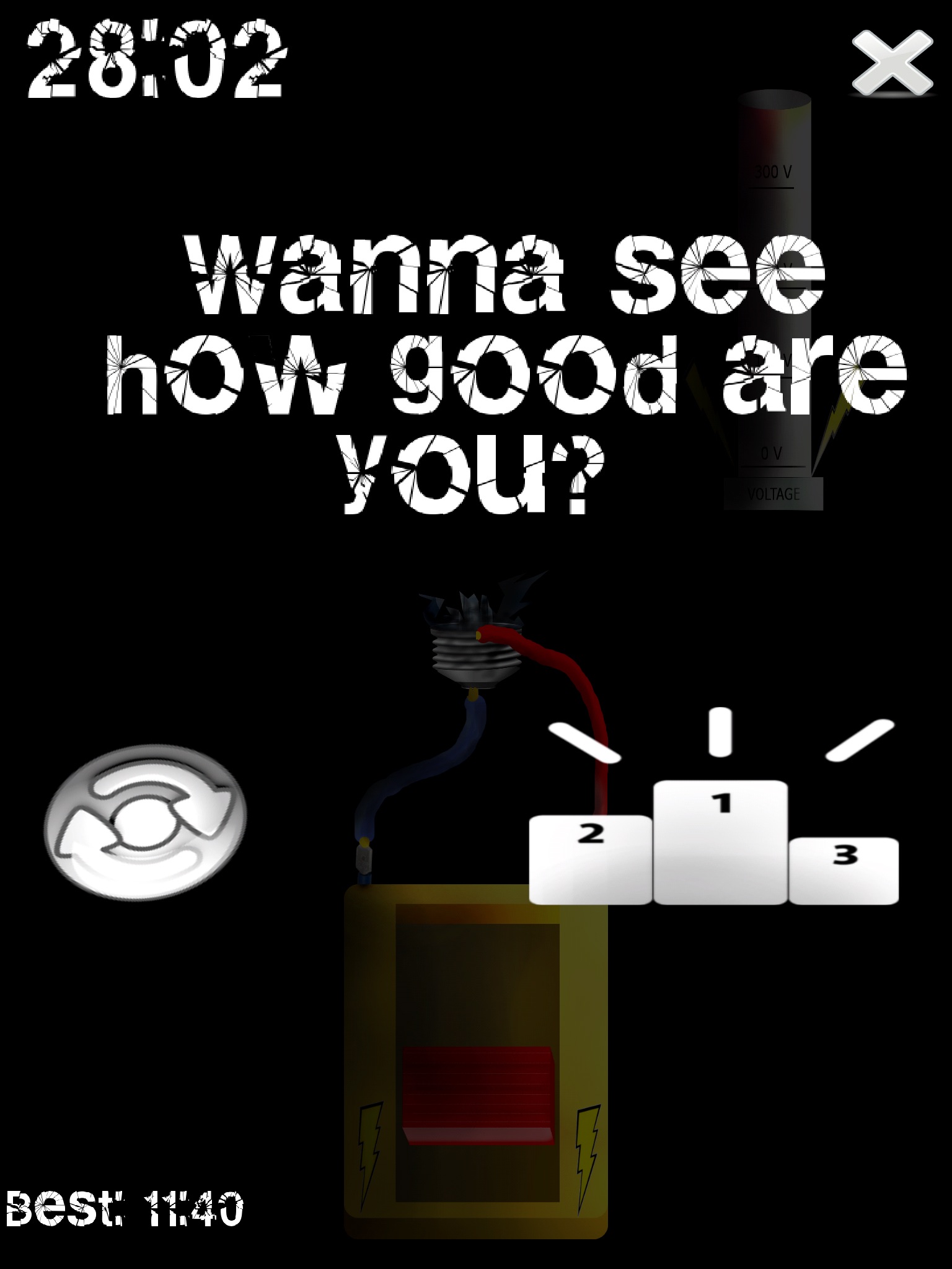 Main goal of this game is to break the bulb as fast as you can. You can achieve this by sliding red button up and down. You can check the progress by looking on a voltmeter.