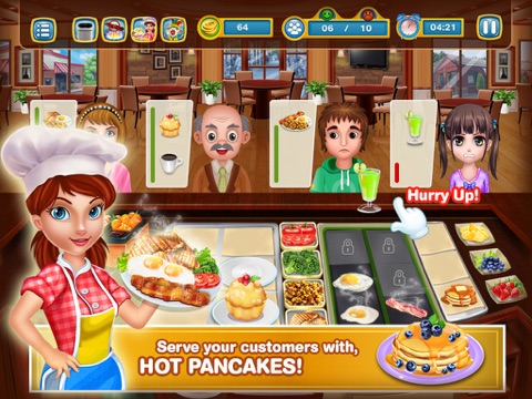 The gameplay includes a kitchen shelf filled with awesome food items, stoves, plates and much more. The happiness of your customers really matters to your chef career. Take your cooking madness to a whole new level and create your own chef story. Do you have what it takes to be a master cooking chef? With awesome power ups, auto trash and happy clown you get to play even better. Build your career as the perfect breakfast cooking master and serve hungry customers with bacons, eggs, potatoes, pan cakes, muffins etc. Serve them with fresh fruit juices or a hot cup of coffee.