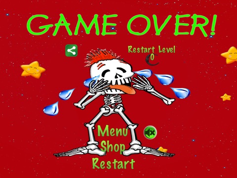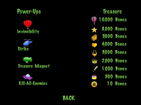 Breaking Bones is fast and fun with entertaining, original artwork and animation. The blue rocket ship hero shoots a fiery skull by tapping the red fire button to defeat a horde of skeleton monsters and obstacles while gathering lots of treasure. Find different power-ups on each level to help gather more riches - The red hot air balloon makes the hero invincible! Just tap the yellow jump button to make the hero fly through the mayhem and gather as much loot as possible to achieve high scores and win the game!