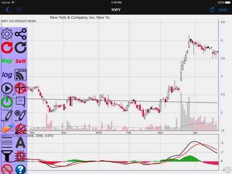 The app also contains the industry leading charts from Interactive Stock Charts ™, with touch info display, scroll, panning, pinch zoom time frame changes. Various TA indicator supports: MACD, RSI, CCI, SMA, EMA, Bollinger, Keltner band, Aroon, Donchian Channel, Stochastic, Ultimate oscillator, Ichimoku cloud and others will be added upon request. Intraday 1, 5, 10, 30 minute charts. EOD charts range from 6 month to over 10 years of historical data for over 19000 stock symbols.
