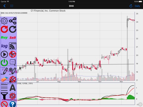The app also contains the industry leading charts from Interactive Stock Charts ™, with touch info display, scroll, panning, pinch zoom time frame changes. Various TA indicator supports: MACD, RSI, CCI, SMA, EMA, Bollinger, Keltner band, Aroon, Donchian Channel, Stochastic, Ultimate oscillator, Ichimoku cloud and others will be added upon request. Intraday 1, 5, 10, 30 minute charts. EOD charts range from 6 month to over 10 years of historical data for over 19000 stock symbols.