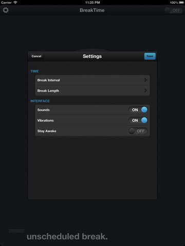 For best results, set BreakTimes notification type to Alert in the Settings app.
