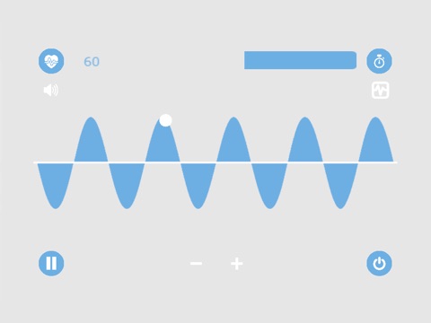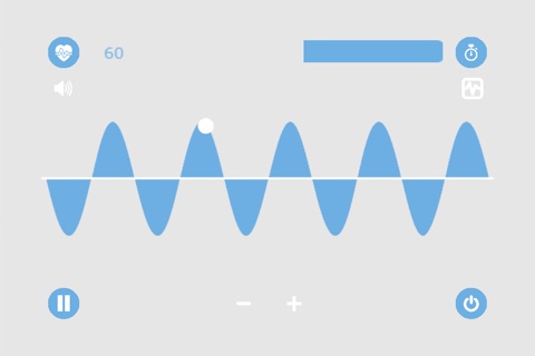 Blijf het balletje volgen met je ademhaling totdat ‘Goed gedaan!’ in je scherm verschijnt. Je kunt kiezen uit 3, 5 of 10 minuten oefenen. Het optimale tempo begint bij 6 keer ademen per minuut. Je kunt zelf ook het tempo van het balletje bepalen met de knoppen + en -.