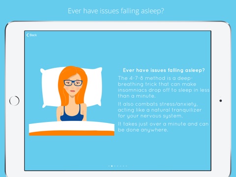 Ever have issues falling asleep? The 4-7-8 method is a deep-breathing trick that can make insomniacs drop off to sleep in less than a minute. It also combats stress/anxiety, acting as a natural tranquillizer for your nervous system. It takes just over a minute and can be done anywhere.