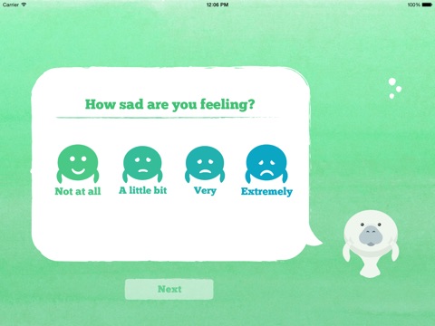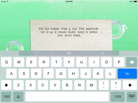 When receiving a joy, type it into the bubble and watch it float toward you as you breathe deeply with Manny the Manatee.