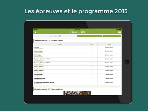 Voici quelques extraits du programme couvert par notre application dans quelques-unes des matières de l’application :