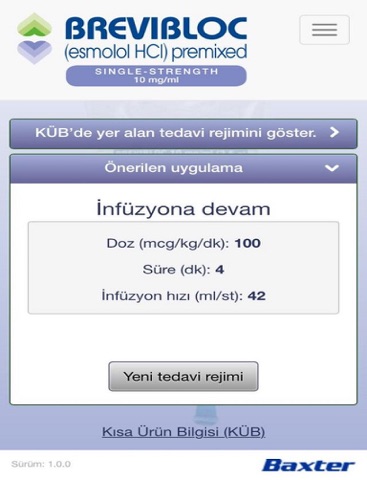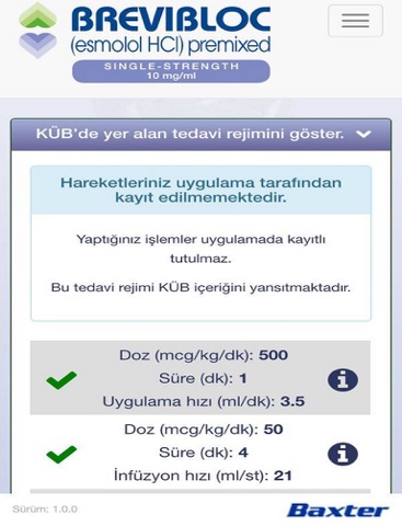 Bu uygulamanın sadece İOS 8 versiyonu için validasyonları yapılmıştır. Baxter Healthcare alternatif versiyonlardaki kullanımlarda karşılaşılabilecek uyuşmazlıklardan sorumlu değildir.