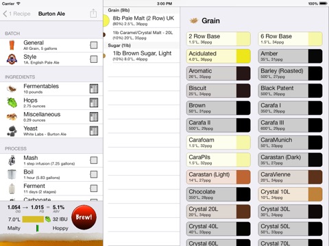 Excelente opção para usar na hora de fazer a brassagem, agora não é mais necessário imprimir a receita ou ficar com o notebook a beira da panela. Uma voids chata é que os maltes só podem ser adicionados de 1 em 1Kg. Medida em gramas seria muito útil.