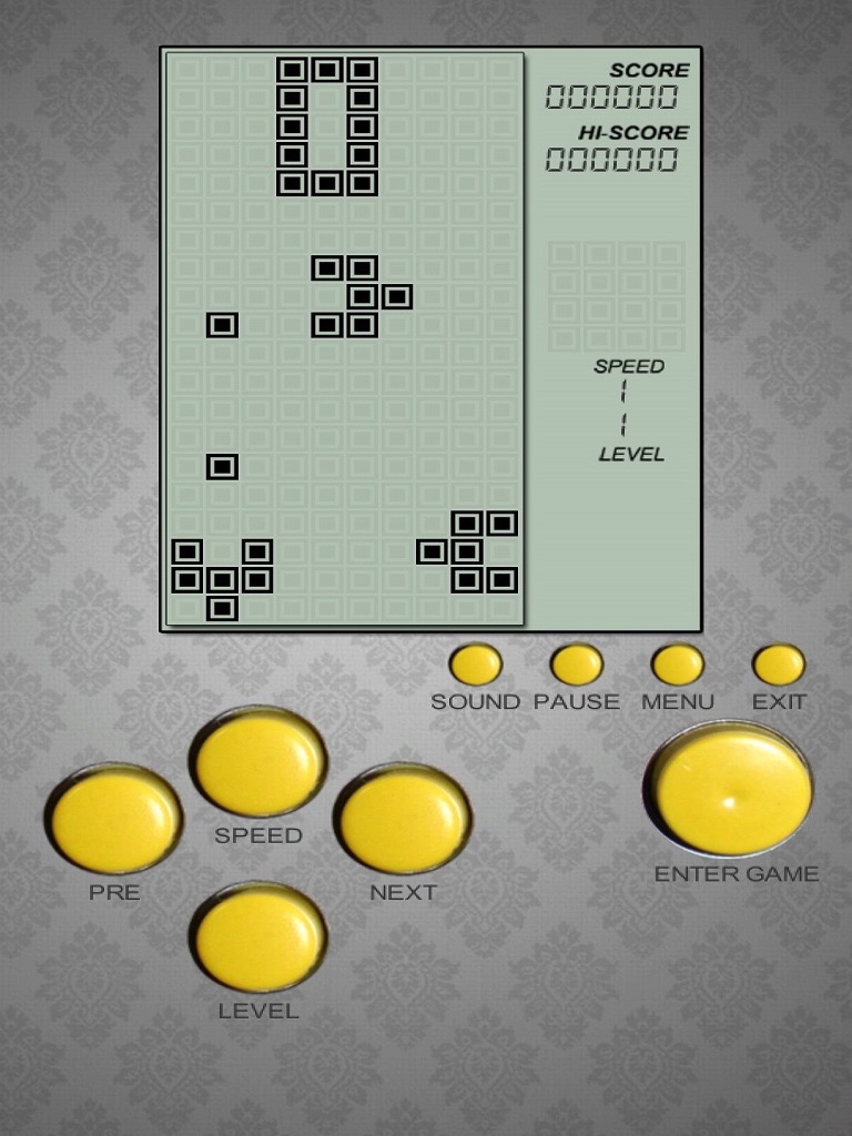 There available 8 different games, you can also change the initial level and the speed for each of the games.
