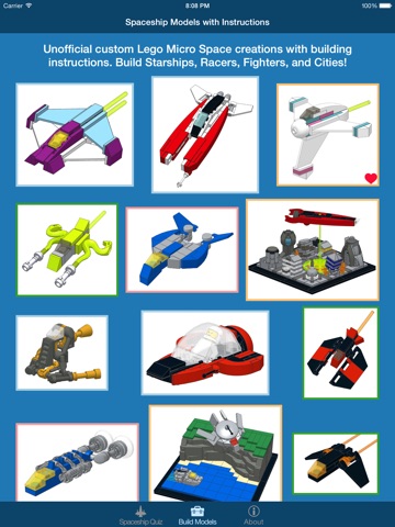 Learn how to build spaceships! Build racers, fighters, explorers, and other great spaceships with your real world bricks. Play the quiz game to discover which spaceship model best fits you, and then build it! Discover the complex brick geometry and building secrets behind the most creative micro spaceships and space scenes ever built.