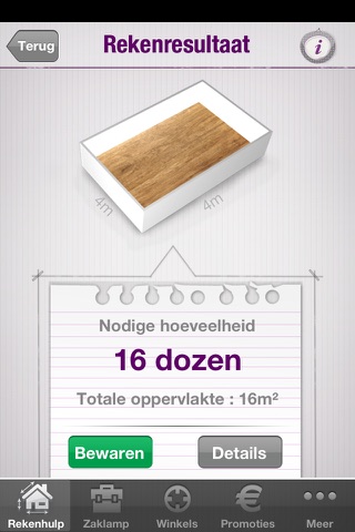 Bereken in een handomdraai hoeveel materiaal je nodig hebt.
