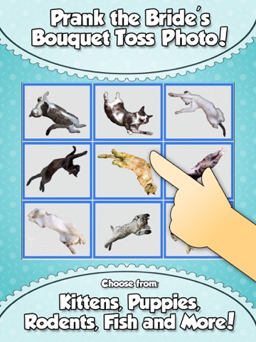 Have fun with wedding bouquet photos and flying cats! This simple app will allow you to superimpose cats and other cute, fuzzy animals in place of the bouquet in your wedding photos for fun and laughs.