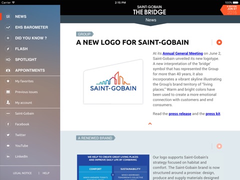 SKYLINE provides an overview of Saint-Gobain’s strategic and brands issues. Major milestones in the Group’s development, presentation of innovations, projects and initiatives, employees commitment and the outlook for our markets and customers: find out all the latest news from Saint-Gobain in the world in a single app!