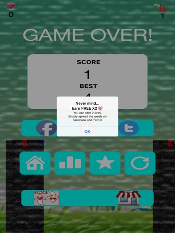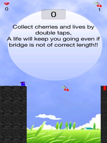 Collect red shiny CHERRIES and LIVES as you run over the bridge by going under the bridge by a tap and come back up again by one more tap once you grabbed the life and/or cherry.