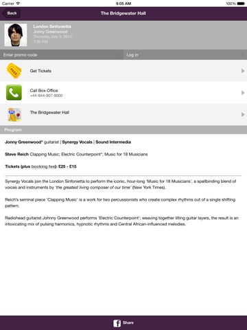 The Bridgewater Hall App is powered by TN Mobile Plus.