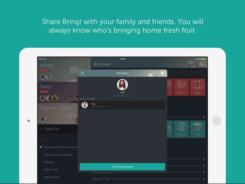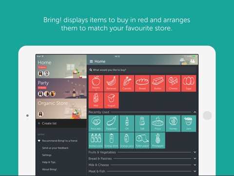The Bring! easy grocery list organizer turns shopping into a smooth and stress-free experience. Get the free shopping list app now and easily create shared grocery lists from wherever you are. You can use the Bring! grocery shopping app for free on your smartphone, tablet or Apple Watch, or as the web version. Your shared digital shopping lists are available wherever and whenever you need them, making forgotten groceries a thing of the past. Bring! grocery list maker saves you time, money and stress.