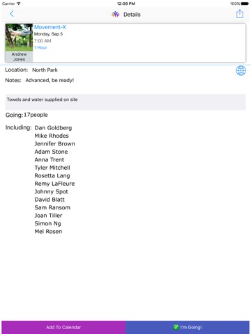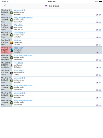 - Follow the schedules of groups (coaches, trainers and friends) and never miss out on a great activity.