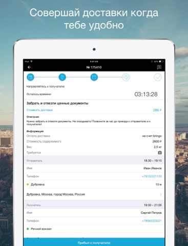 - Технологично и просто: Брингер работает с доставками только через мобильное приложение, а заработанные деньги там же переводит на банковскую карту.