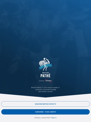 Already a British Pathé TV Subscriber? Just download the app and get started. Or subscribe to British Pathé direct in the app for just $7.99 /month.