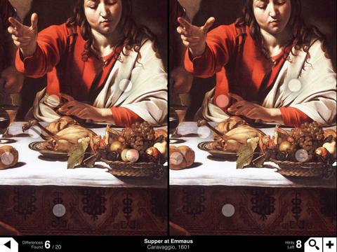 The interface is easy to use and lets you explore high definition images of classical paintings: pinch to zoom, drag to pan the image, and tap to mark the differences.