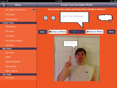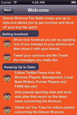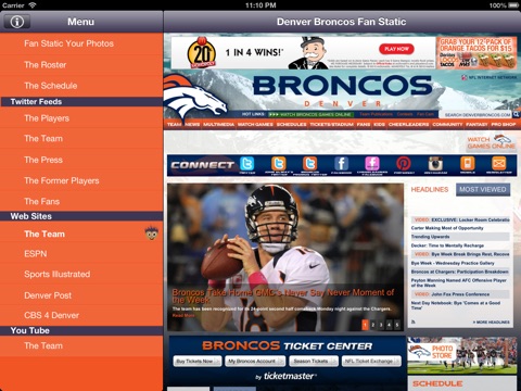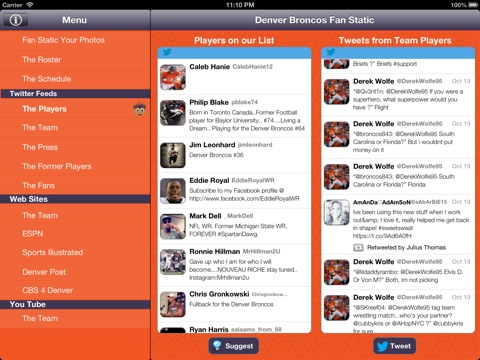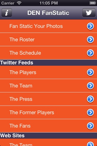 Denver Broncos Fan-Static keeps you up to date and allows you to get involved and show off your true fan spirit! Follow Twitter Feeds from the Current Players, Management, Local Beat Writers, Former Players and FANS like you! Youll never miss a news items, fact or tweet with Fan Static.