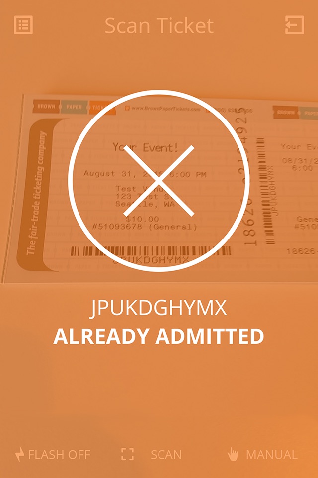 Note: Designed to use with Brown Paper Tickets box office tools. Be sure to activate barcodes for mobile scanning for your event before using the app.