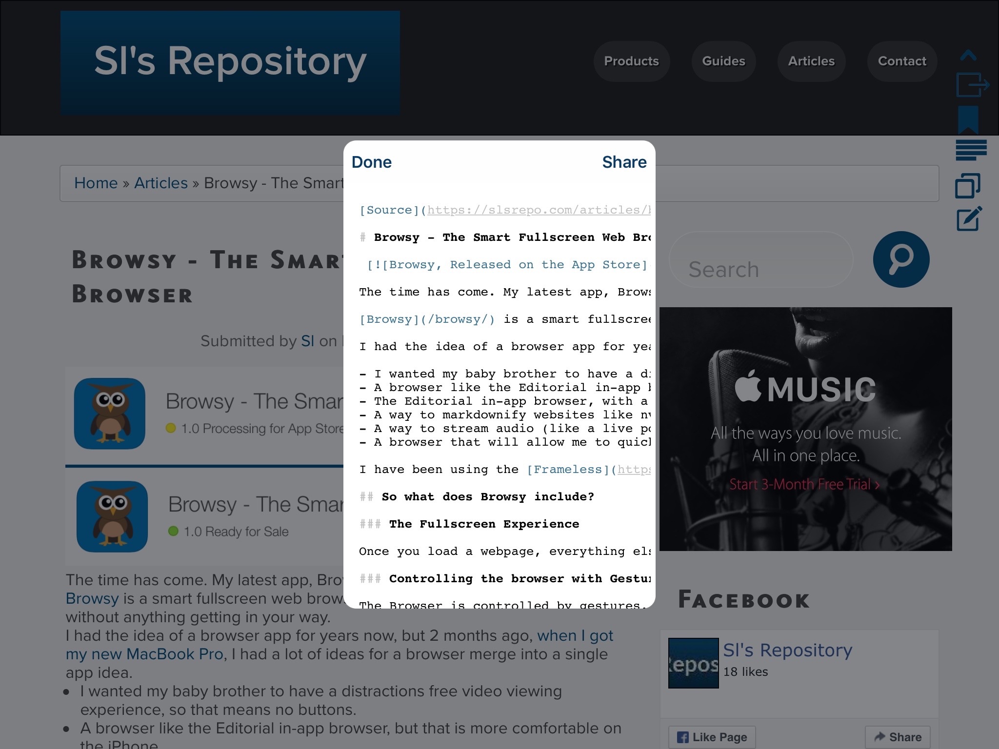 Browsy - The Smart Fullscreen Web Browser and Website Markdownifier at Mac App Store analyse