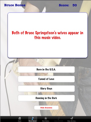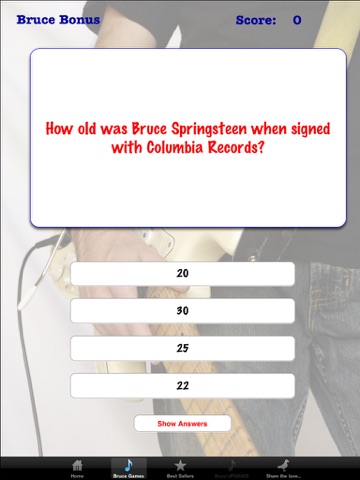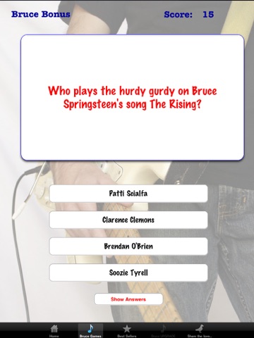 Think you know all there is to know about Bruce and the band? Well, dig into this treasure trove of fan-created trivia and find out. With hundreds of questions about bruce, the band, their greatest albums and shows, wildest times and lives off the stage you are sure to learn a thing or two. Answer harder questions correctly and earn more ponts. You can even choose to reveal the correct answers when you get stumped.