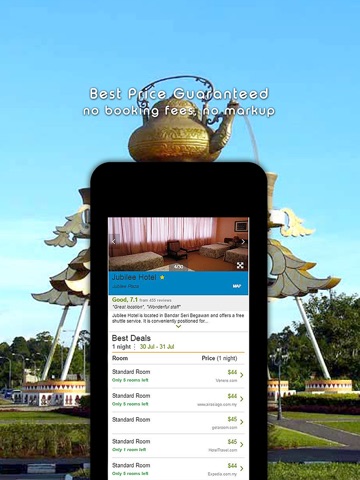 Brunei Hotel Search, Compare Deals & Book With Discount help you to find and compare the best hotel deals from all major travel websites with one quick and easy search. No matter where in the world you are looking, how much is your budget, even at the very last minute, this app will find you the cheapest one to fit your budget and get you the best value for your money.