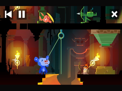 By interacting with the environment, help Brutus & Futée to safely pass any obstacle.