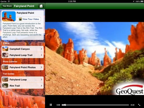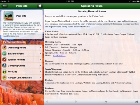 Information sections help simplify planning your visit to Utah. Interactive maps, GPS functionality, detailed park information, and site identifying photos help optimize your vacation time and provide a unique keepsake from your trip.