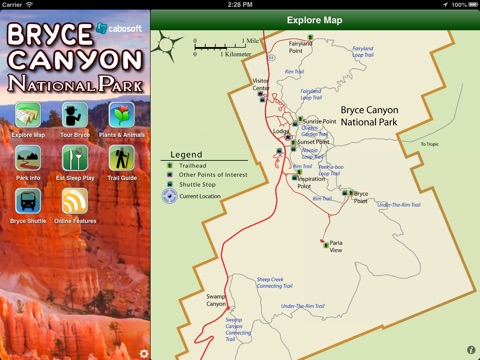 The Bryce Canyon National Park app is the ultimate trip planner and guided tour for Utahs Bryce. Use it to plan your trip, explore the park and remember your visit. the Bryce app is a must-have for any Bryce Canyon National Park explorer.