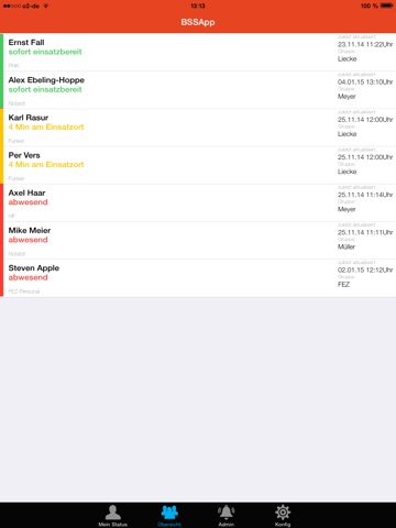 Die BSSApp (Bereitschafts Status System) erlaubt Einsatzkräften, (z.B. Feuerwehren, Rettungsdiensten, Sicherheitsdiensten) intern ihren Verfügbarkeitsstatus mitzuteilen.