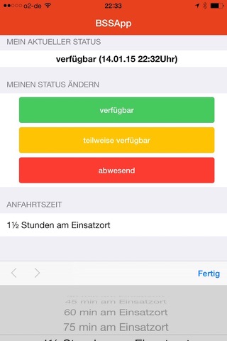 - Angabe der Anfahrtszeit zum Einsatzort bzw. Wache oder Gerätehaus