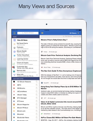 BTCnews, the #1 and most established crypto news app in the store, brings you all the very latest news, analysis, and research about the world of Bitcoin and other Cryptocurrencies, from all the very best sources, updated throughout the day. In addition, financial information and charts are now included for numerous cryptos. Too busy to sift through all the news? Trending news and interesting items are curated and tagged for quick access. Or, choose your favourite sources or favorite topics for a quick check.