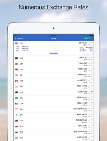 - View Bitcoin-to-$ current exchange rate displayed directly in the navigation bar, and constantly updated