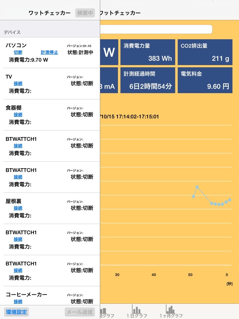 ラトックシステムのワットチェッカーREX-BTWATTCH1で計測された消費電力・電流・電圧など各種データを表示するアプリケーションです。