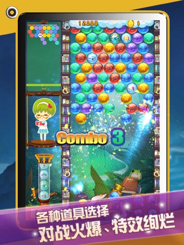 Tap the screen to launch bubbles, through three or three more of the same color are connected to eliminate bubbles.