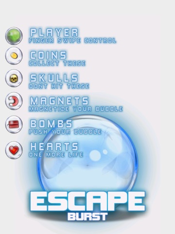 Bubble Burst Escape is great bubble survival game. Your goal is to collect coins and avoid collision with skull, magnet and bomb bubbles. Awesome finger control gives you great gameplay experience and you can survive many impossible moments in game. This is game what you can play anywhere, because control is so easy, just focus and make your moves to avoid collisions. Great graphics and visual effects finalize gaming experience.