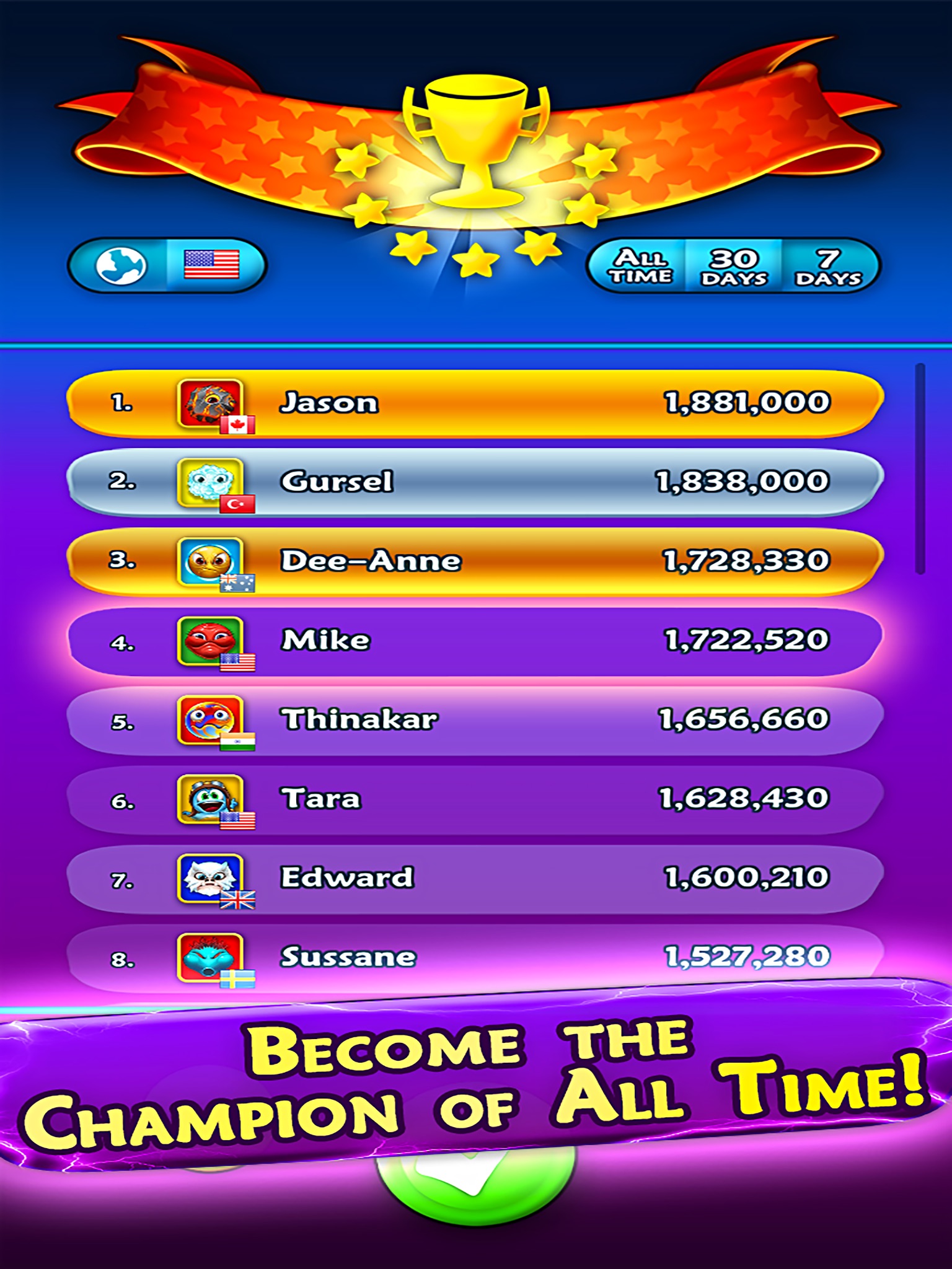 Beat your friends and make it to the top of the global leaderboards in this endless challenging and ever-changing bubble shooter game!