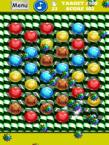 Slide your finger through the candies to combine them and complete missions. Your mission is get the target score to complete the level. Be fast when the level is based in time and when the level is based in number of movements. Calculate exactly what movement will be the best.