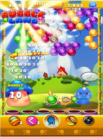 This is a bubble land about courage and wisdom. In the fancy bubbles world, there are a lot of cute dragons living in a lovely building of mushrooms shape. These cute dragons are: sweet pink dragons(level 50 unlock), smart green dragons(level 25 unlock) and powerful blue dragons. Unfortunately, they were trapped by some magic bubbles. Well, complete these tasks and you will save all these dragons!
