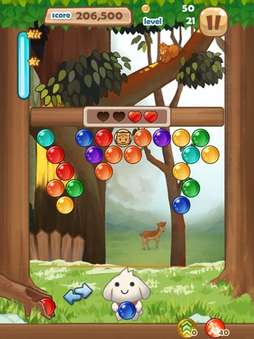 - Shoot the balls to make combinations of 3 or more bubbles to make them disapear and gain score points.