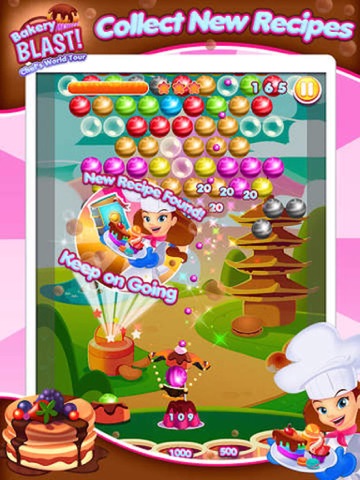 On to London and everyone’s favourite, Tea and Scones - yum! Now for the World! Make your way along the Bakery Blast tour map and see what gorgeous cakes are waiting round each corner of the globe. Carry on shooting those delicious berry bubbles to win yourself a new recipe book, collect them all and make your way to the dreamiest gateaux ever, waiting for you under the croissant moon!!