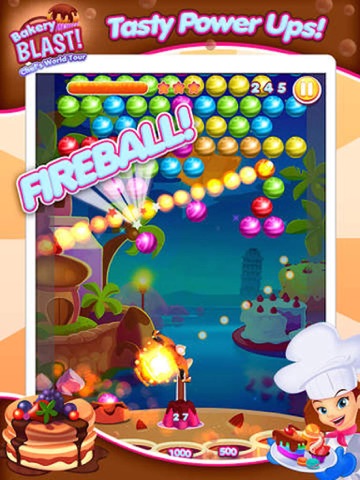 Aim and fire those flavoured berry bubbles to match up three or more, clear the board and start your amazing world tour. Step up folks, the first whistle stop is good ole USA, enjoy scrummy Cherry Pie while the Statue of Liberty dons her apron and rolls out that cook book!