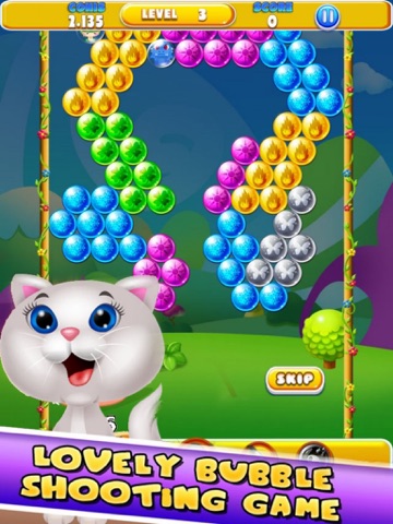 - Shooting down the bubbles of the same color by tapping the place where you want to shoot.