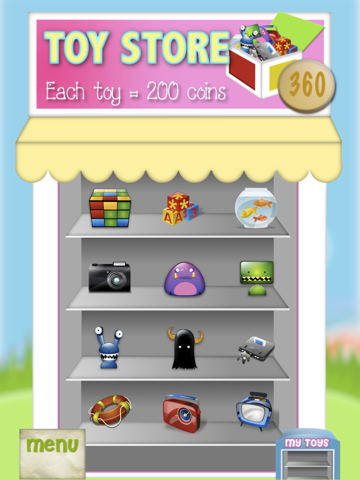 After each study through playing, children will be given several coins into his/her virtual piggybank, depending on the score. They can redeem a toy with 200 coins and keep it in the toy shelf. Have fun learning!