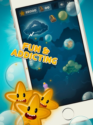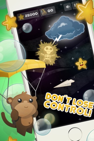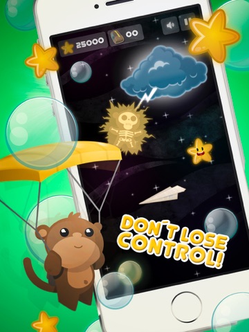 Description: BubbleJump! is the top rated new FREE kids game (for all ages) that was designed with crisp, cutting edge graphics, whimsical soundtracks, stimulating sound effects and simple to use tilt control (leaning your mobile device from side to side) to guide BAM the Monkey higher and higher - while helping to improve kids eye-hand coordination with a fun and exciting gameplay. BubbleJump! features and increasing speed of flight and difficulty with bubble-bursting obstacles, such as paper airplanes, toxic bubbles and lightning clouds, and also allows the user to make use of soap bonuses, stars and parachutes for added sky soaring scores.
